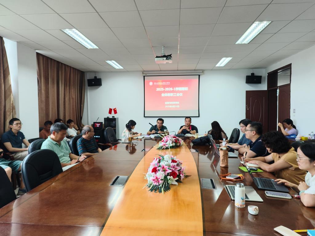2025年9月23日,我院在1J-506会议室召开2025-2026学年第一学期期初全体教职工会议。本次会议由李乐副院长主持,学院领导班子及全体教职工齐聚一堂,共同为新学期工作谋篇布局。