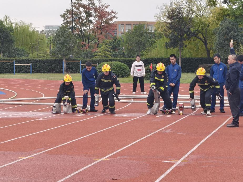 在消防安全知识竞赛中,各学院代表队围绕消防理论展开激烈角逐,充分检验了学生对防火、逃生、急救等知识的掌握程度,有效促进了消防安全意识的普及。随后的消防技能比赛则注重实战能力,设有“双人着装灭火接力赛”,选手们争分夺秒穿戴消防服并迅速完成灭火任务;“400米负重接力赛”不仅考验体能,更是对速度与耐力的双重挑战;而“两人三带打靶”项目则着重考察团队协作与灭火器材使用的精准度。通过模拟真实火场情景,学生得以在紧张而逼真的氛围中深化灭火技能,将消防知识内化于心。