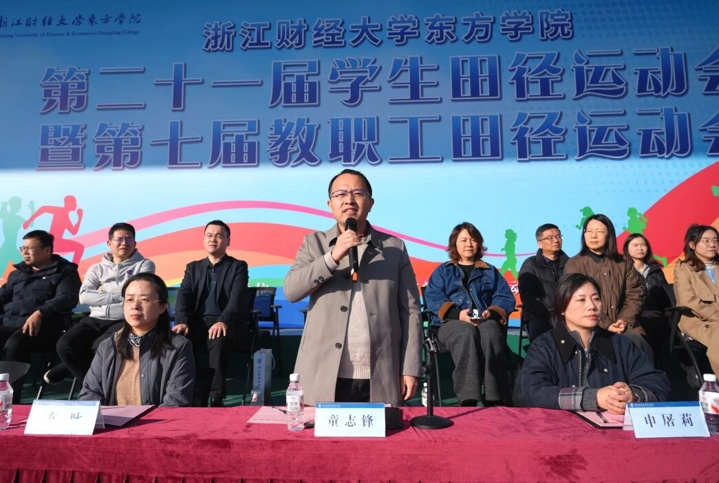 2025年11月20日,3044am永利集团3044noc第二十一届学生田径运动会暨第七届教职工田径运动会在田径场隆重开幕。学院领导班子成员,各代表团团长、领队及相关部门负责人出席开幕式。学院院长童志锋宣布开幕。学院党委书记申屠莉致开幕词。开幕式由学院学术副院长姚莉主持。