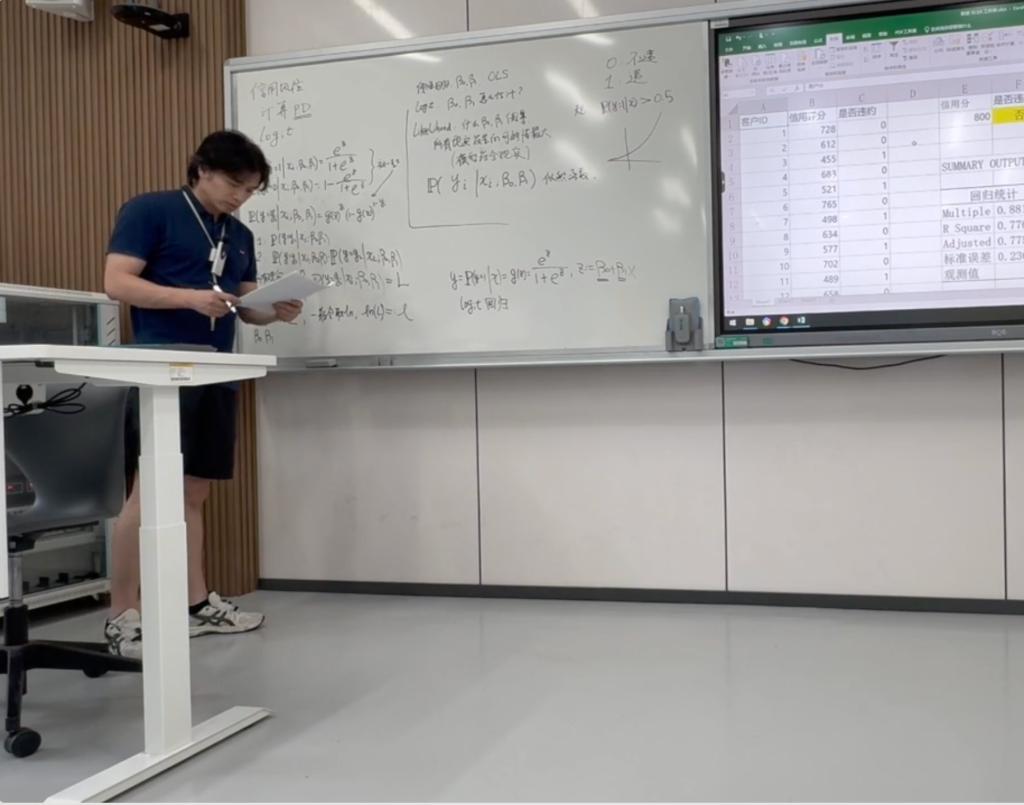 朱基煜老师则在新工科赛道的《金融风险管理》课程中,直面信用风险量化的核心挑战。他深入浅出地讲解了逻辑回归模型在违约概率预测中的原理与应用,将复杂的数理模型转化为解决银行实际信贷问题的钥匙,着力培养学生的量化分析能力与风险管控意识,体现了鲜明的工科与金融交叉融合特色。
