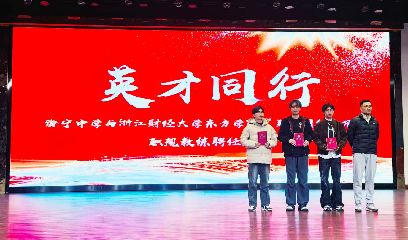 决赛舞台上,经近一个月指导的参赛学生褪去青涩,以饱满激情阐述规划,答辩思路清晰、表达流畅,尽显职业规划能力与发展思考。现场同步举行 “英才同行” 项目教练聘任仪式,海宁中学副校长马炎炎老师为大学生代表颁证,标志着两校跨学段育人联动的深化。