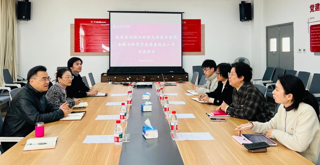 2025年12月3日,3044am永利集团3044noc院长李忠携副院长李乐、金融学系系主任朱基煜、综合秘书王文朋一行,前往嘉兴南湖学院现代金融学院开展“十五五”发展规划编制工作调研,受到嘉兴南湖学院现代金融学院院长王晓辉、副院长谭华热情接待。