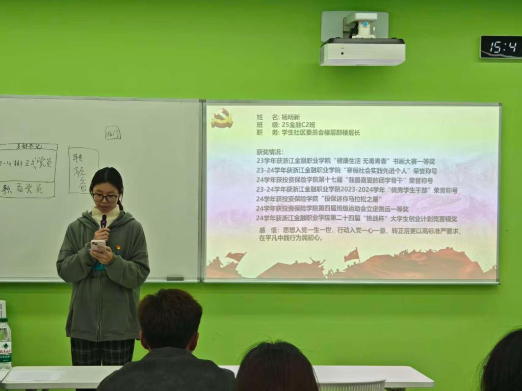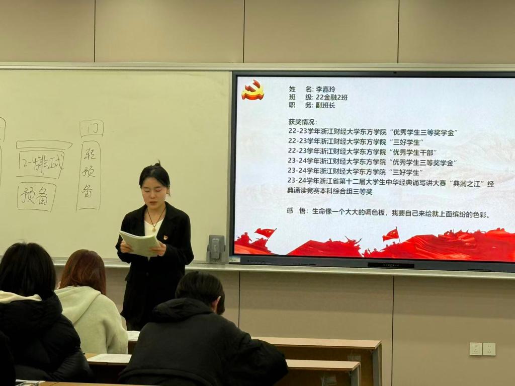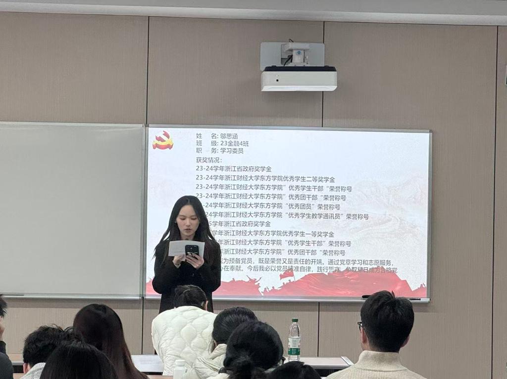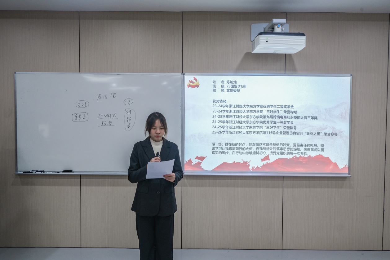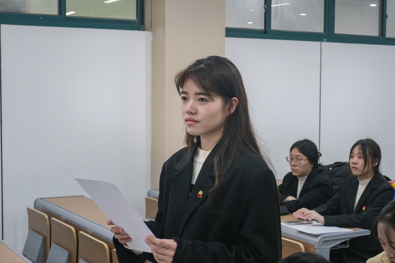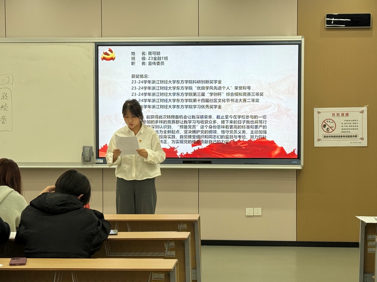 周嘉晨等32名预备党员依次上台宣读《转正申请书》,从思想、学习、工作及生活等方面向党组织汇报了具体情况,也对自身的缺点和不足提出了进一步改正的计划与决心。