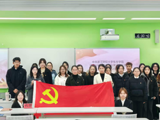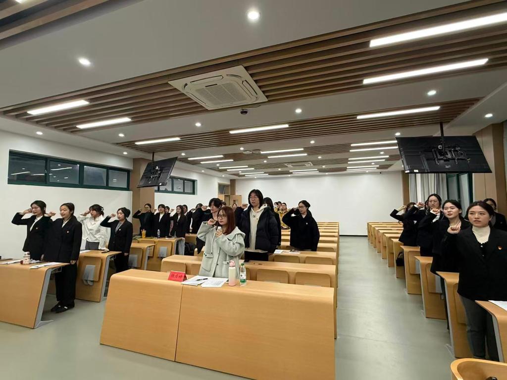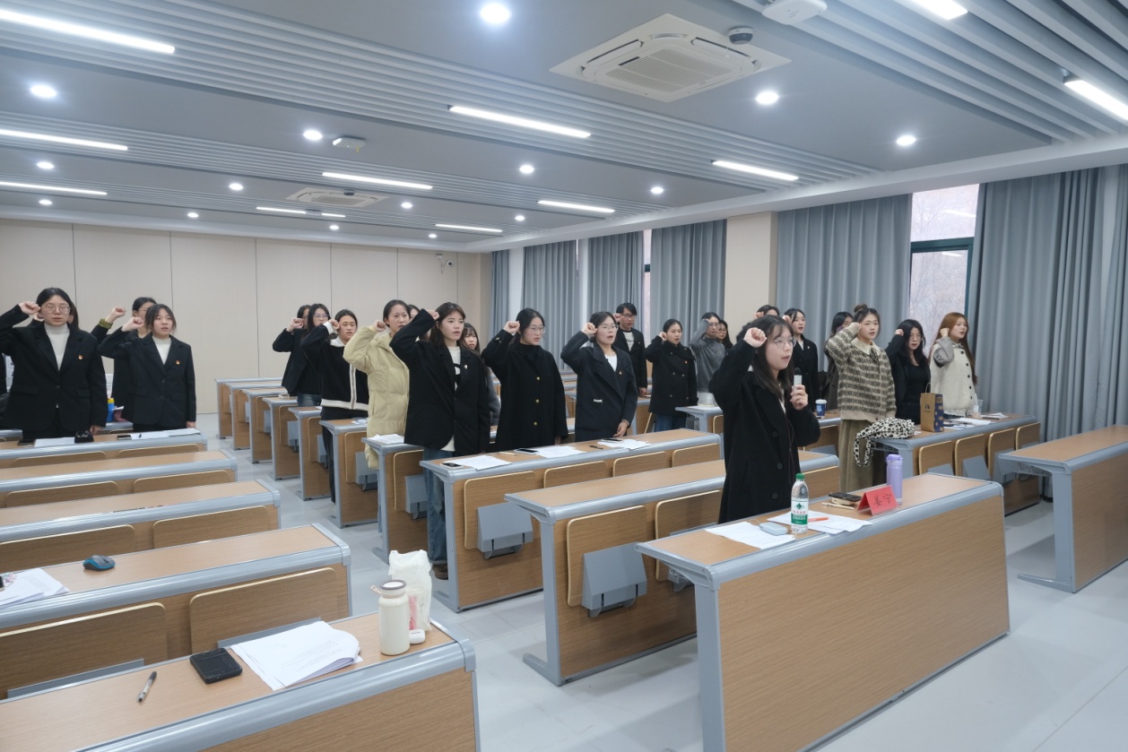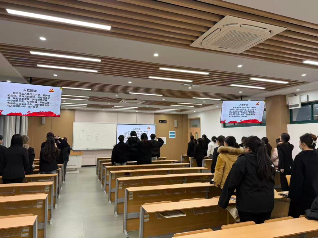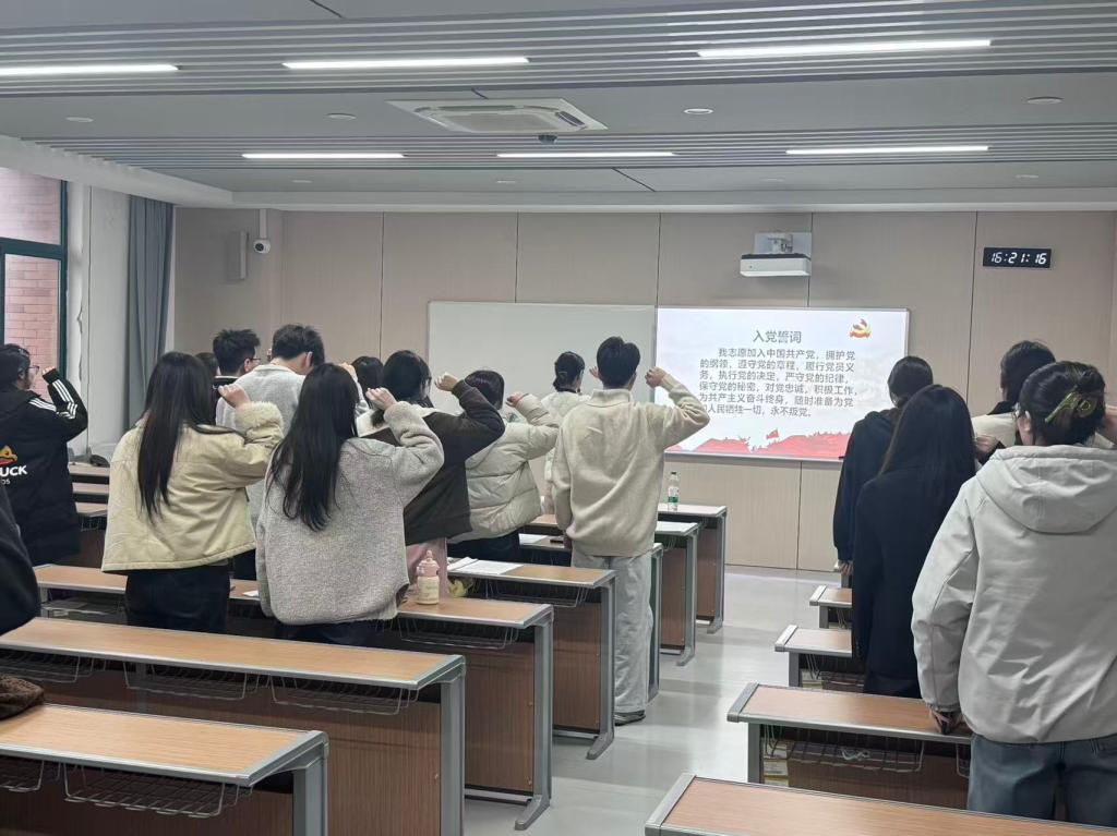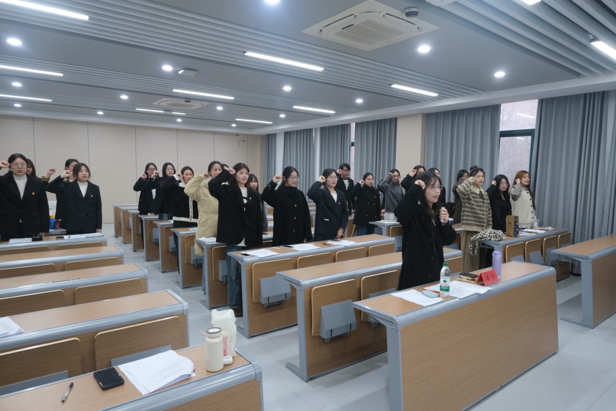会议结束之际,全体党员、预备党员起立进行入党宣誓。