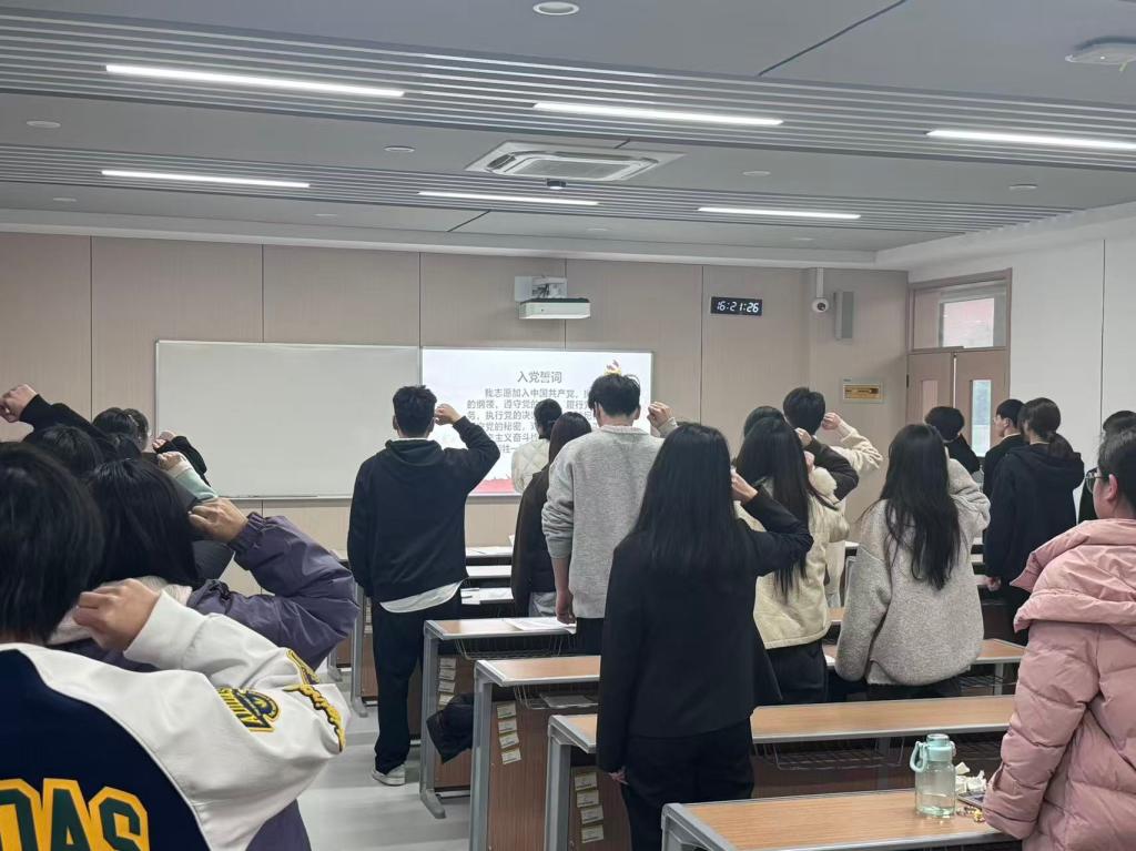 高欣暄等32名发展对象依次上台宣读《入党志愿书》,从思想政治、学习成绩、工作贡献、群众基础、作风纪律等方面,详细汇报了自成为入党积极分子以来的成长历程、收获感悟及存在不足,深刻表达了对加入中国共产党的坚定渴望和为党和人民事业奉献青春的决心。