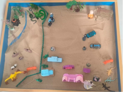 本场活动中,有人摆放代表国家与秩序的建筑沙具,让沙盘中央渐成规整的 “文明聚落”;有人添上花草、动物模型,让场景充盈生机;围墙被特意设置为 “边界”—— 墙内是有序的生活,墙外是舒展的绿色与宁静。而军旅小人的登场,希望以此表现 “文明对野蛮的驯服”。过程中,不少成员主动配合他人的构思,补充配套设施、完善环境体系,让作品从零散的想法凝聚成完整的叙事。