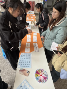 “保险常识转盘” 环节同样热闹非凡。色彩鲜艳的转盘被均匀划分成 8 个区域,每个区域都标注着贴近生活的保险常识问题,通过随机提问的形式,让同学们在紧张又有趣的氛围中,纠正了保险认知误区,掌握了实用的生活保险常识;“险种匹配蹲” 以其活泼有趣的形式成为全场焦点,点燃了同学们的参与热情。同学们通过抽取写有保险险种的卡片,用儿时游戏的方式记忆、了解不同的保险险种,学习到了保险学的新知识。活动现场气氛热烈,吸引了众多老师和同学的参与。