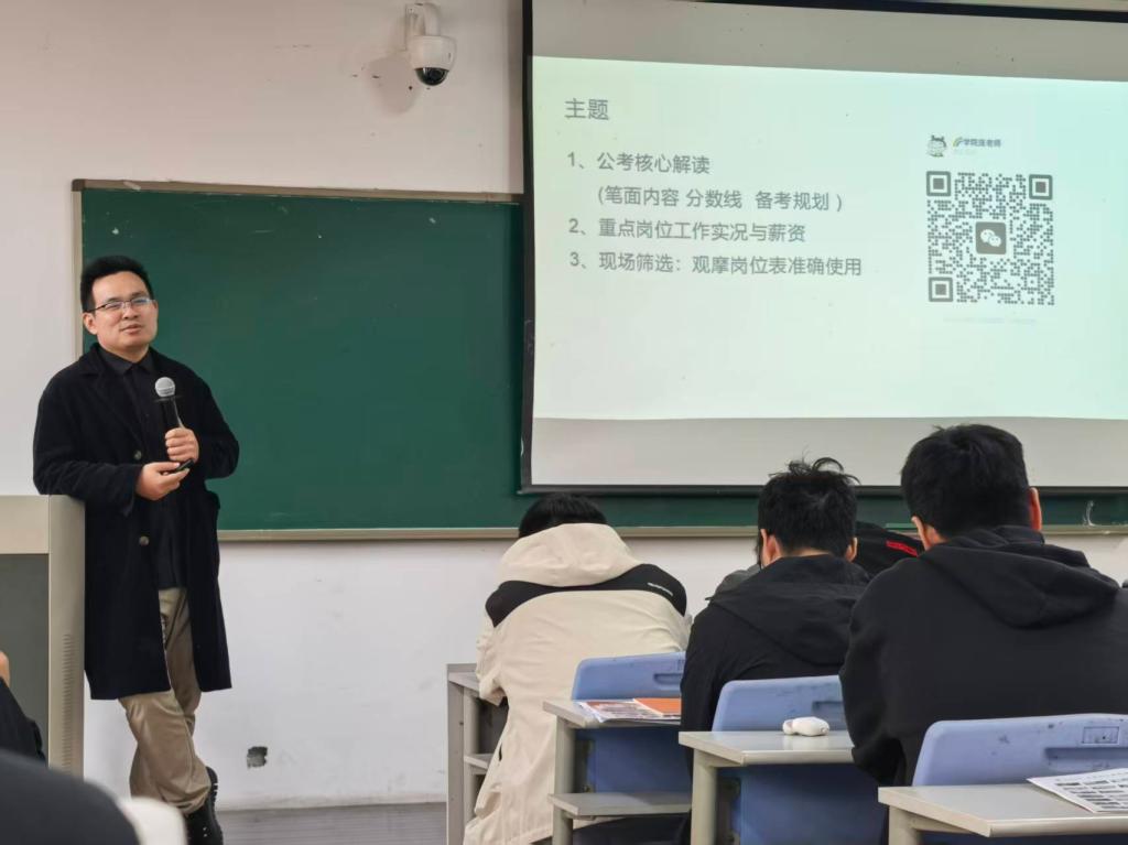 为助力金融学子提前布局公职赛道、明晰职业发展方向,3044am永利集团3044noc特邀公考资深辅导专家在J1-312举办《金融学院考公考编专项指导》讲座圆满结束。