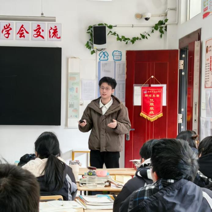 在成长规划分享环节,金啸辰老师以 “多元发展,逐梦青春” 为主题,用鲜活案例与详实数据勾勒出东方学院学子的成长全景图。他从学术深造(考研升学率、出国交流项目)、职业发展(校招就业质量、校企合作单位)、综合素质提升(社团文化、志愿服务、社会实践)三个维度,讲述了东方学子在校园中 “深耕专业、拓展视野、锤炼能力” 的真实故事,让中学生直观看到 “大学不仅是知识殿堂,更是个性绽放的舞台”。针对现场学子热议的 “大学情感观” 话题,金老师并未回避,而是以 “成长同行,双向奔赴” 为核心展开交流,引导中学生树立健康的爱情观与价值观:“优质的情感应是彼此成长的动力,唯有先精进学业、提升自我,才能在青春路上收获双向奔赴的美好。” 真诚的分享引发在场学子的强烈共鸣,现场互动提问环节气氛热烈。