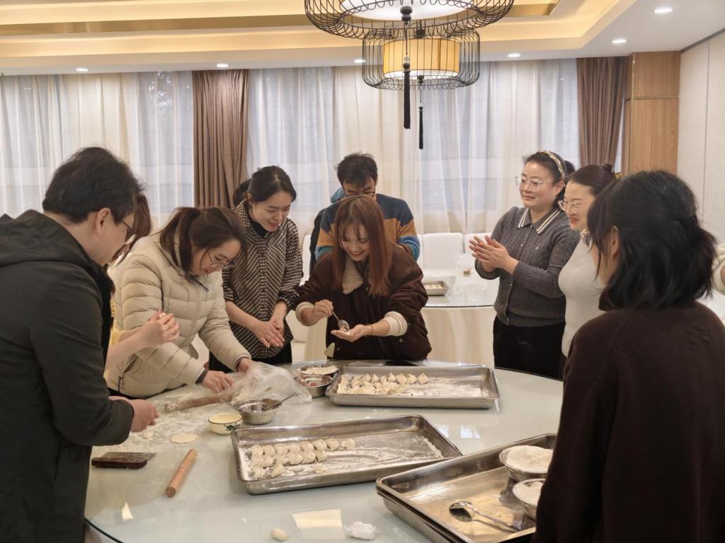 活动伊始,包饺子环节热闹展开。教职工们分工协作,擀皮、调馅、包制一气呵成,现场欢声笑语不断。一个个造型各异、寓意美好的饺子陆续摆满托盘,洋溢着浓浓的节日气息。大家在动手体验传统民俗的同时,还交流着各自家乡的春节习俗,分享工作与生活中的点滴趣事,现场氛围轻松而融洽。