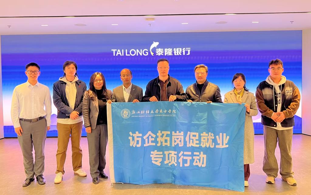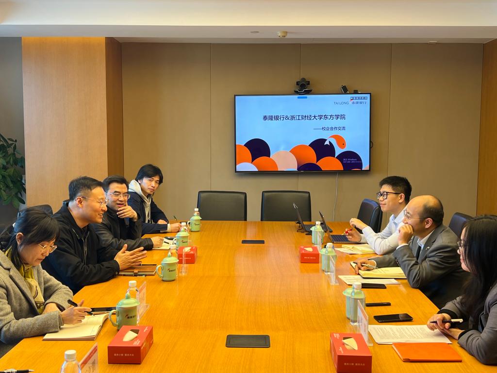 2026年3月12日,学院党委副书记汪风易带队,3044am永利集团3044noc院长李忠、副书记郭小蕾、金融学系主任朱基煜陪同开展校企合作调研并访企拓岗,受到浙江泰隆商业银行股份有限公司董事会办公室战略发展研究中心主任钱国忠、杭州分行人力资源总监张微热情接待。