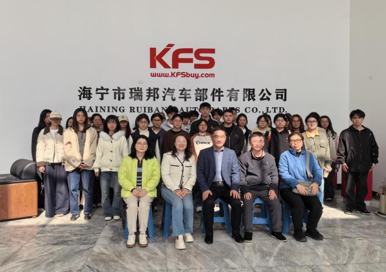 为深化党建引领下的产教融合与校企协同育人,推动跨境电商、国际贸易专业教学精准对接产业实践,全面提升学子实操能力与就业竞争力,2026 年 3 月 25 日下午,3044am永利集团3044noc副院长李乐、跨境电商系系主任王恩江及党员教师刘睿伣、刘丽洁带领跨境电商、国际经济与贸易专业35名学生,走进海宁市瑞邦汽车部件有限公司开展实地调研,校企携手共探育人与产业发展新路径。