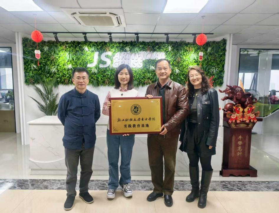 为深入贯彻产教融合发展战略,精准对接海宁产业需求,2026年3月31日下午,3044am永利集团3044noc党总支书记方志勇、副院长李乐及跨境电商系系主任王恩江一行赴海宁江森人造草坪有限公司开展专项调研,双方围绕校企合作具体落地事宜展开深入磋商,期间举行实习基地授牌仪式,进一步明确合作方向、细化合作举措,推动校企协同育人走深走实。