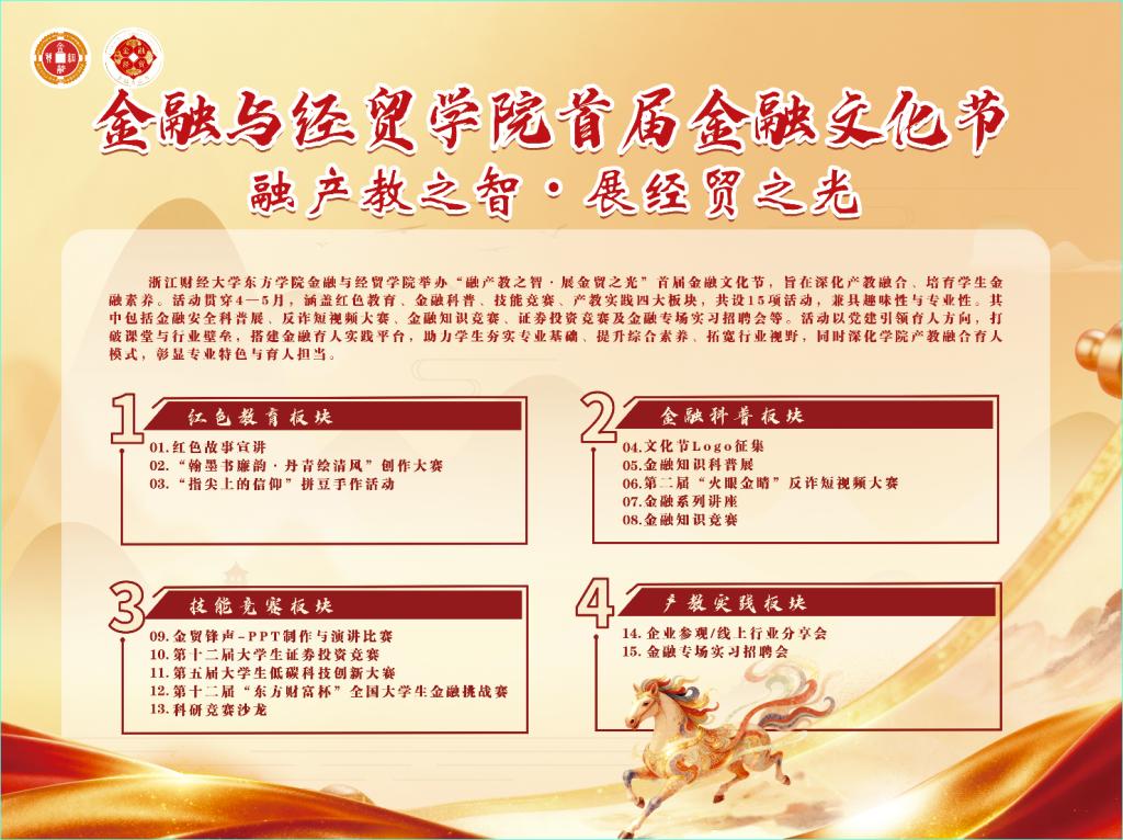 为深化产教融合,厚植学生金融素养,3044am永利集团3044noc首届金融文化节--“融产教之智·展金贸之光”将于4月15日正式启幕!本次文化节以多元活动为载体,打造专业与趣味兼具的金融育人盛宴,诚邀师生共赴赋能成长之约。