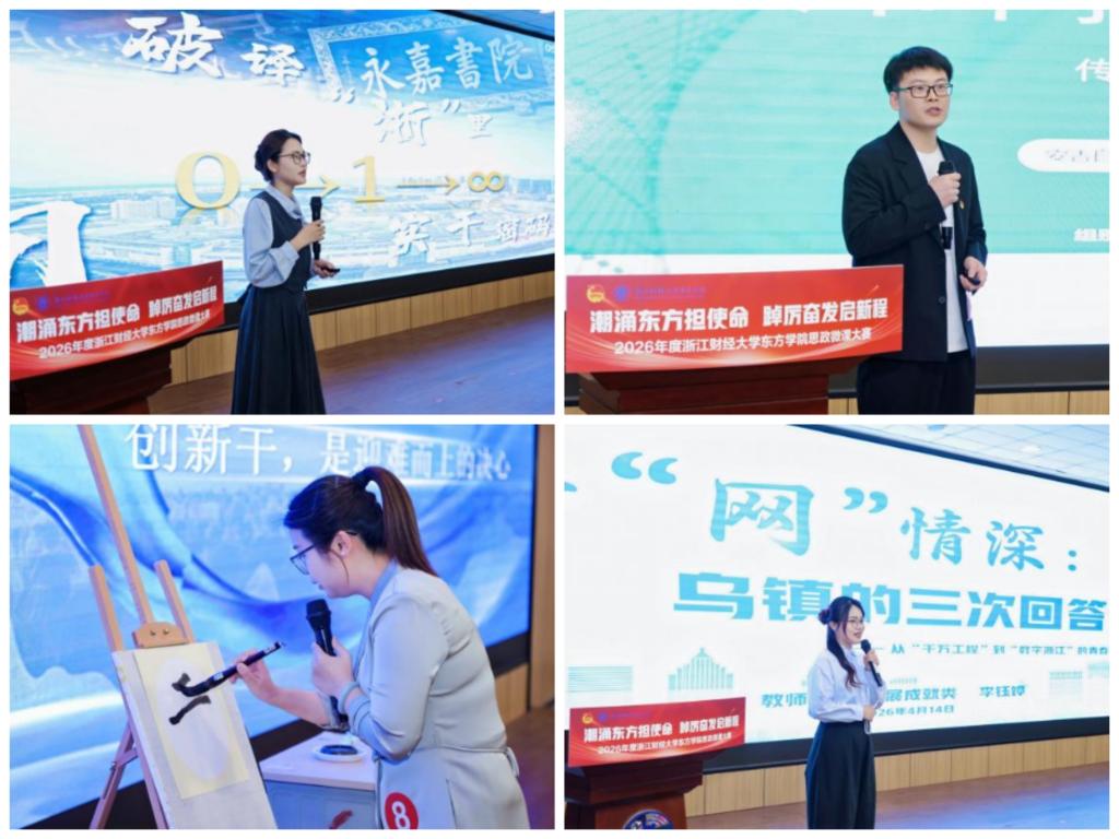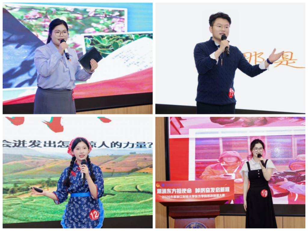 没有枯燥的说教,没有刻板的念稿,红色教育、发展成就、青春奉献三大赛道上,选手们以小切口讲透大主题,把思政课讲得入耳又入心。有人在硖石灯影里,解锁藏在本土非遗里的红色基因;有人从一封未寄出的家书里,读懂跨越时空的初心信仰;有人在浙江的共富图景里,解码中国式现代化的青春答案;有人在扎根基层的榜样故事里,唱响 “强国有我” 的青春宣言。每一段讲述都戳中人心,没有照本宣科,只有走心讲述,把思政课讲得鲜活又戳心,台下掌声就没停过!